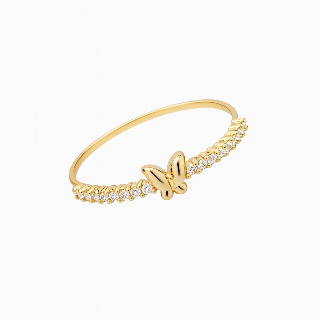 Anel borboleta amarela em ouro 18k com zircônias laterais.