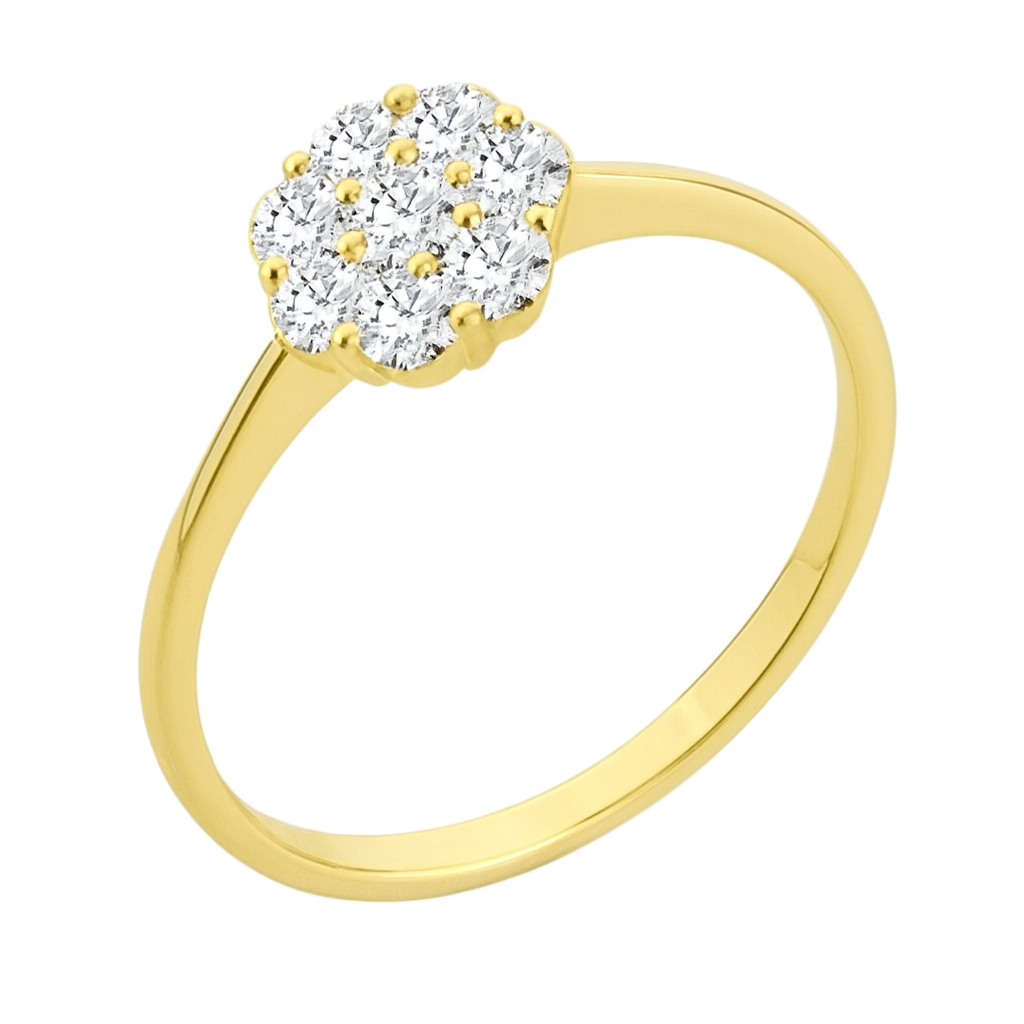 Anel flor em ouro 18k com 8 zircônias.