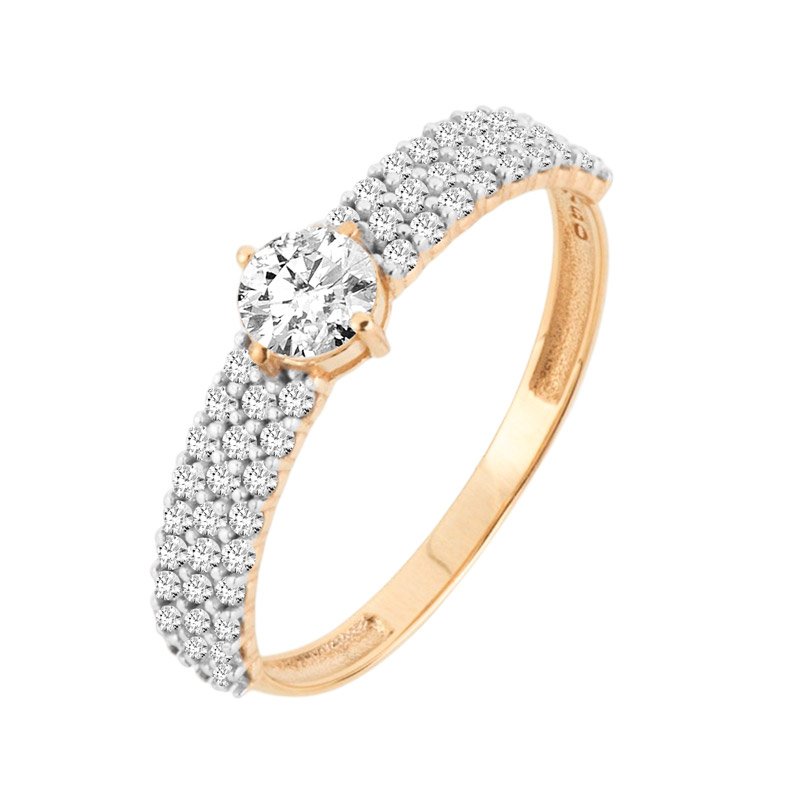 Anel solitário com 3 fileiras de pedras em ouro 18k com zircônias.