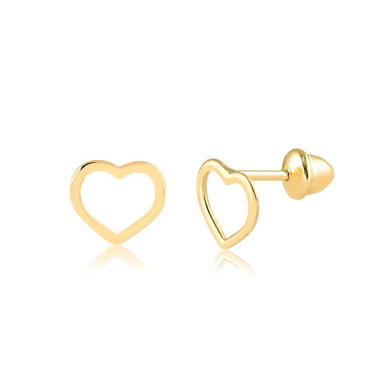 Brinco coração vazado em ouro 10k.