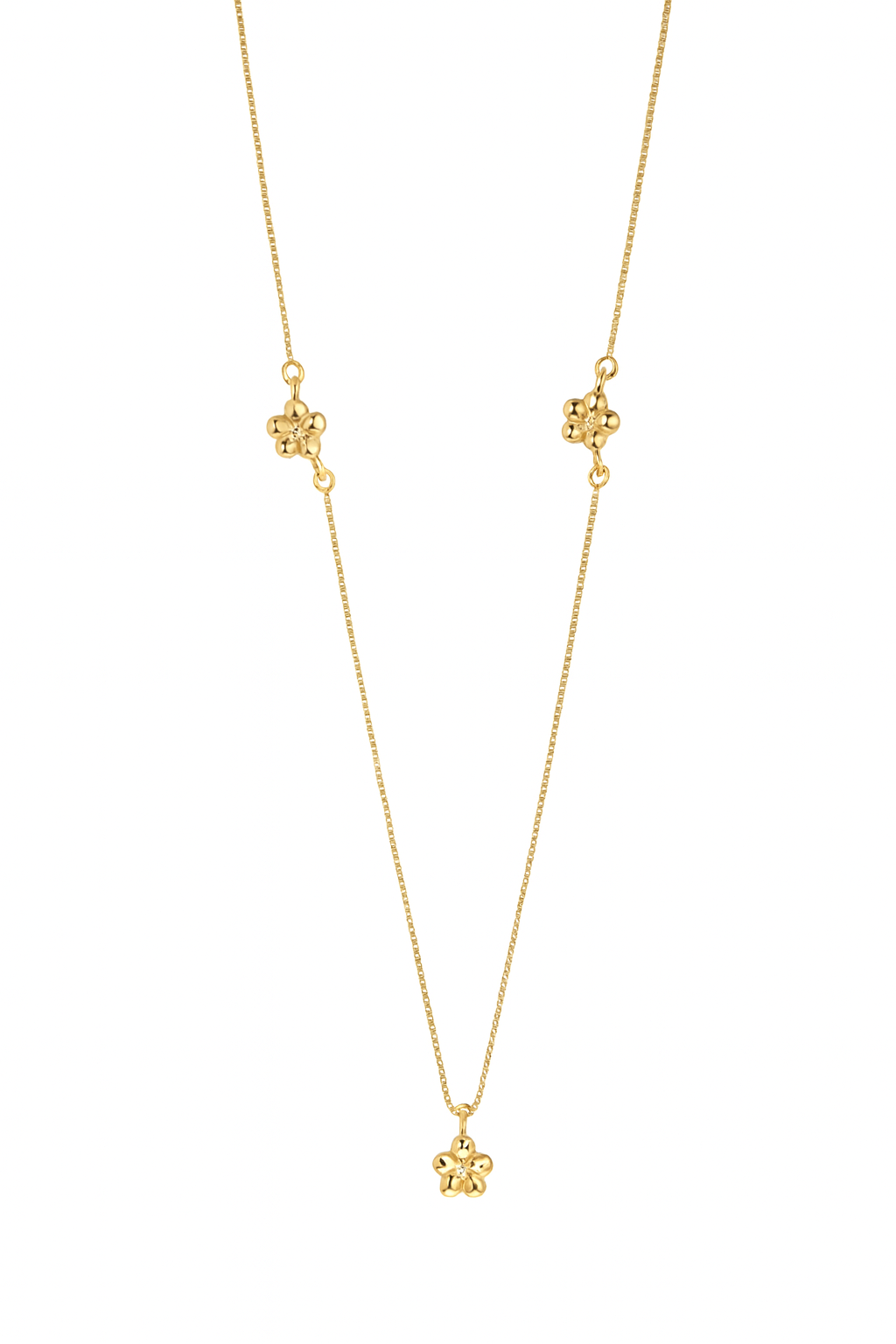 Gargantilha veneziana de 45cm com flores em ouro 18k.