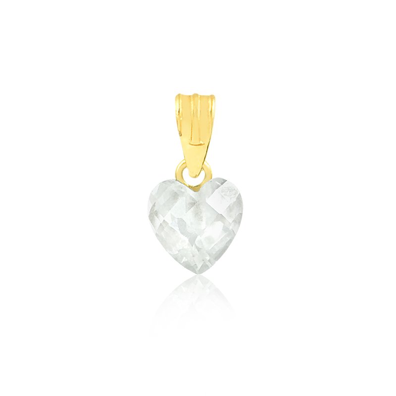 Pingente Coração Cristal em ouro 18k com Zircônia.