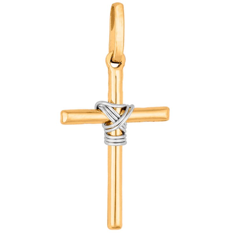 Pingente cruz fios em ouro amarelo e ouro branco 10k.