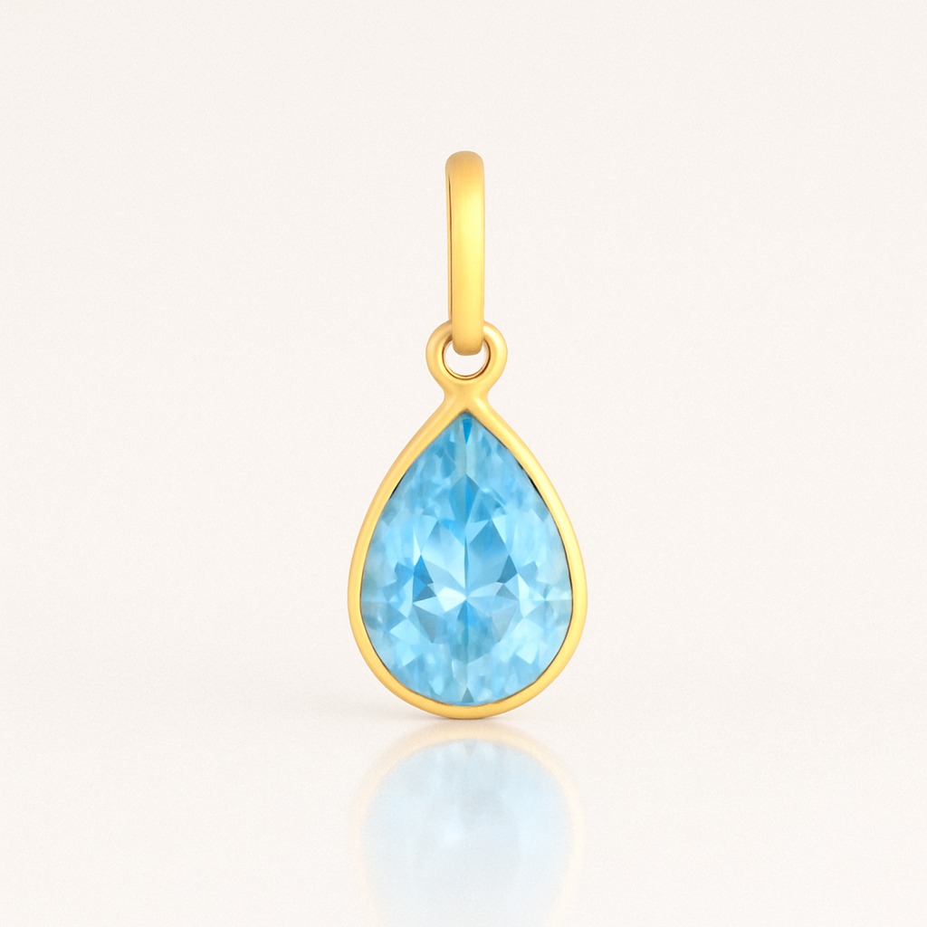 Pingente gota ponto de luz em ouro 18k com zircônia de 3x6mm.