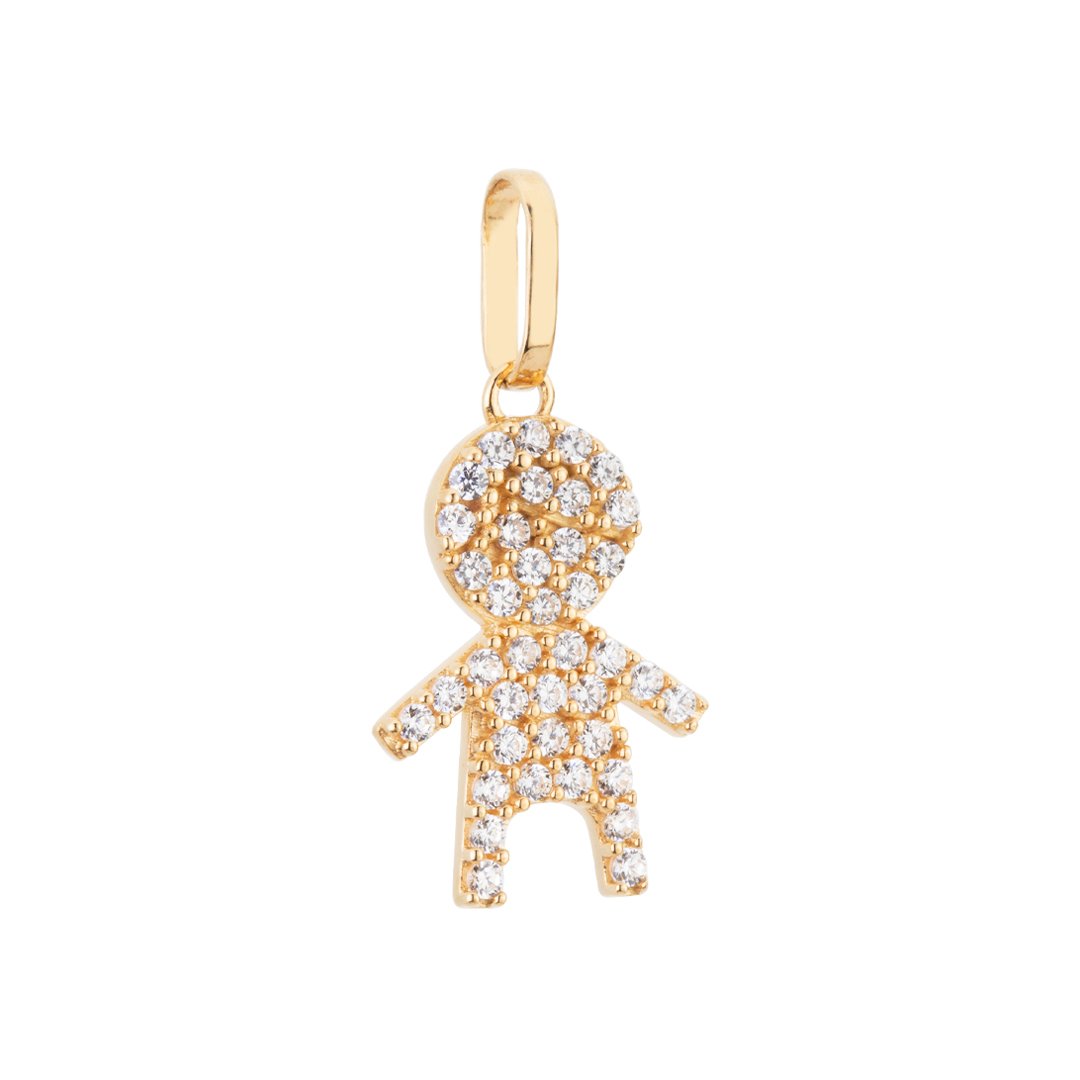 Pingente menino em ouro 18k com zircônias.